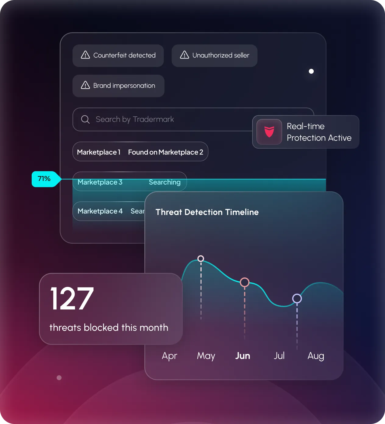 Detecte y desmantele falsificaciones, estafas, phishing y otras formas de uso indebido de la marca en marketplaces, redes sociales, motores de búsqueda y más.