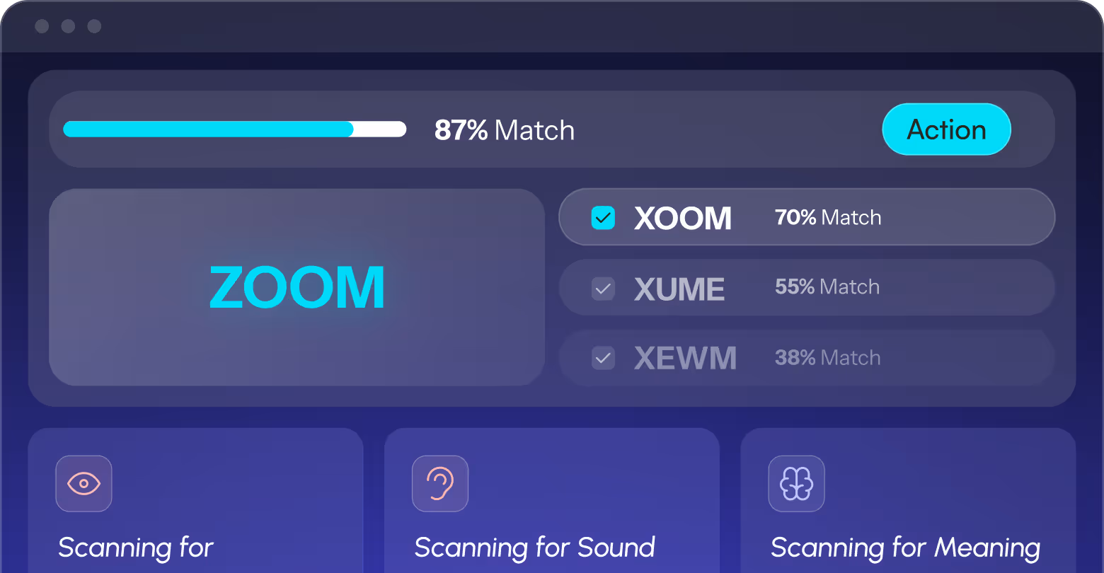 Purpose-built models read how marks look, sound, and mean - surfacing conflicts that keyword tools and manual scans quietly miss.
