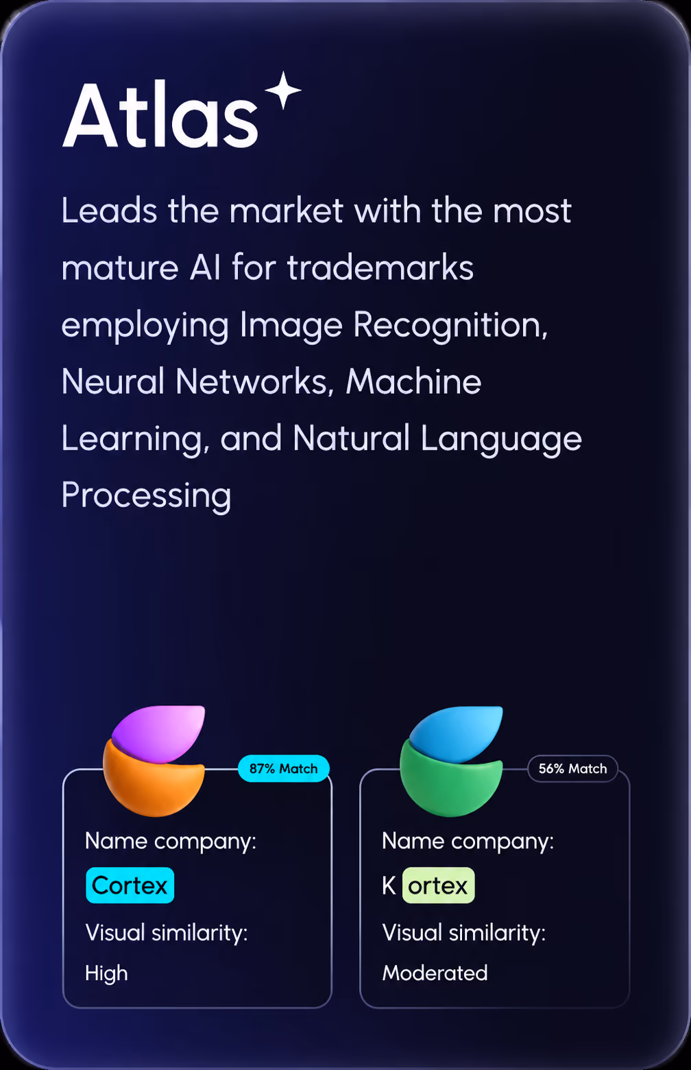 As trademark volumes surge and timelines tighten, Atlas replaces manual review and noisy results with clear, prioritized insight — combining transparent AI analysis with intuitive workflows to spot real risk early, reduce effort, and move forward with confidence.